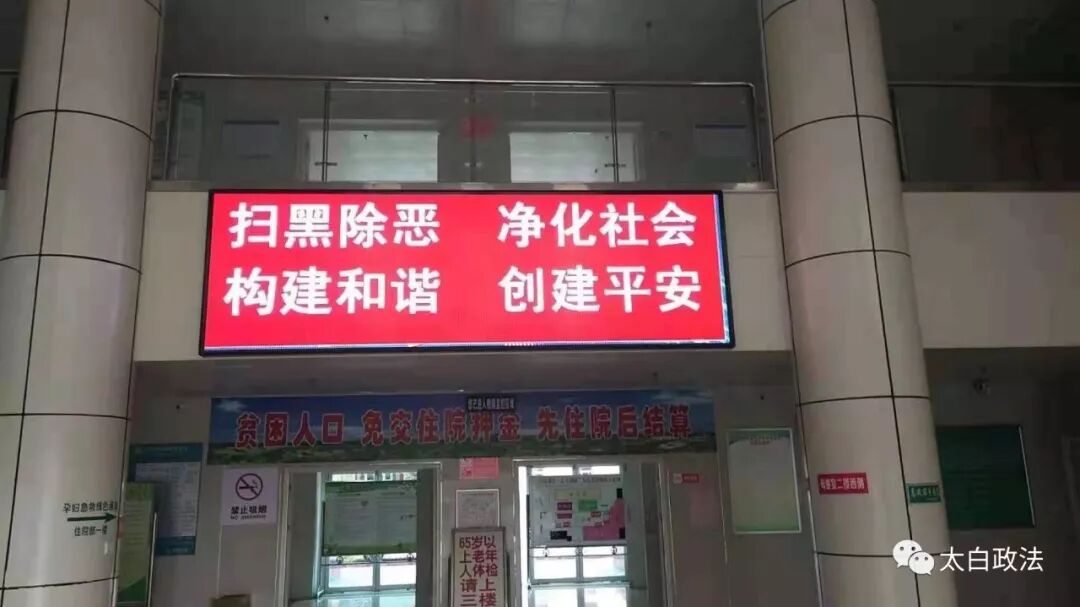 活动开展期间,按照每个重点单位至少一条宣传标语的要求,各 重点单位通过 LED屏滚动播放宣传标语、悬挂宣传条幅等形式,旨在加大扫黑除恶宣传能见率,营造出全民知晓、全员参与的氛围,全力推进我县扫黑除恶专项斗争工作。