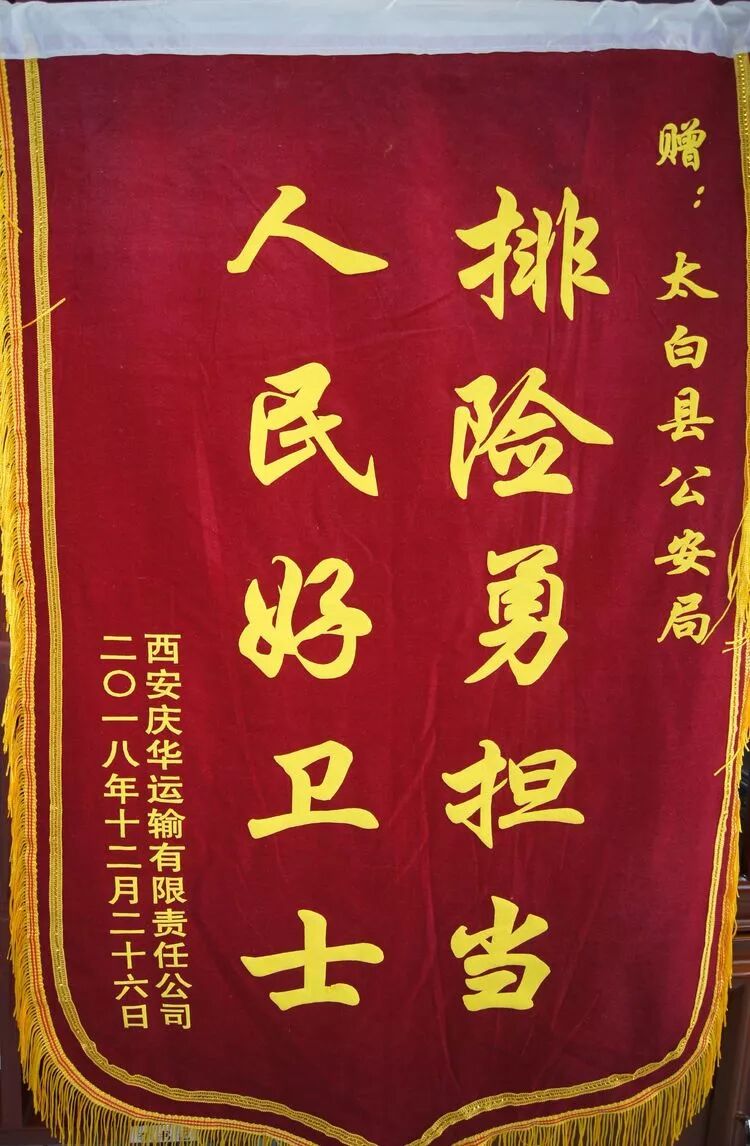 12月27日下午,西安庆华民爆公司及运输公司领导冒雪驱车从西安来到太白县,专程给我县公安局送来了锦旗,向我县公安局表示感谢,对县公安局严谨、公正、扎实的工作态度和亲民爱民的工作作风给予高度赞扬。副局长何健代表县公安局接受了锦旗。