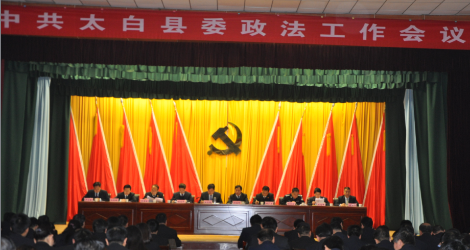 ----太白县委政法工作会议召开 3月4日上午,太白县召开县委政法工作会议。会上表彰奖励了2015年度综治平安建设和信访工作先进单位和先进个人,县委常委、政法委书记张志华做了题为《立足大局, 主动作为,奋力推进政法工作再上新台阶》的工作报告,总结了2015年政法综治维稳信访反邪教工作,安排部署了2016年各项工作。县委书记田来锁出席会议并做重要讲话。县委常委、县政府常务副县长许海峰主持会议。