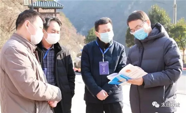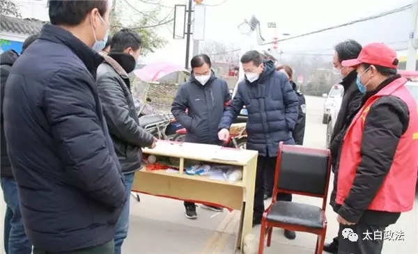 2月11日,太白县委常委、政法委书记严立章,深入王家堎镇、太白河镇检查督导疫情防控规范执法工作,并送去了《传染病防治法》《疫情防控法律服务手册》等法律法规资料及县委政法委、公检法司五部门联合发出的严厉打击妨害防控新型冠状病毒感染肺炎疫情违法犯罪的通告,给基层送法上门,严格执法,依法防控,严厉打击违法犯罪,给大家鼓劲助战,使我县疫情防控工作依法有序进行。