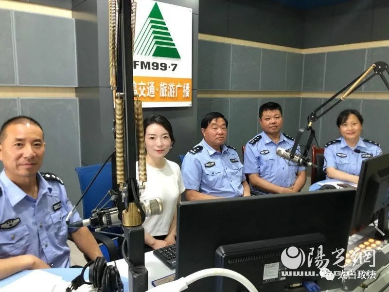 为了更好的使广大群众深入了解太白大队在夏季道路交通安全管理工作中所开展的一系列道路交通秩序整治活动和采取的具体措施及取得的工作成果,从而更直接的听民声、解民意,以群众心声为工作出发点,推动交管工作再上新台阶。6月24日上午,太白大队副大队长董大有带领交管股长梁晓辉、信息中心主任陈敏及事故股民警张宝生共同走进宝鸡交通旅游广播 “FM99.7”栏目直播间,以“夏季交通秩序管理”为主题,对大队当下开展的系列交管及事故预防工作做了全面细致的讲解。同时,还直接与与广大听众进行了“零距离”交流与沟通,并对广大听众的提问进行现场解答,交流互动,受到了各位听众朋友的热烈欢迎与认可。