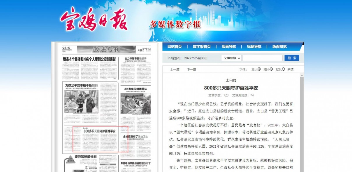 【宝鸡日报】太白县:800多只天眼守护百姓平安 |